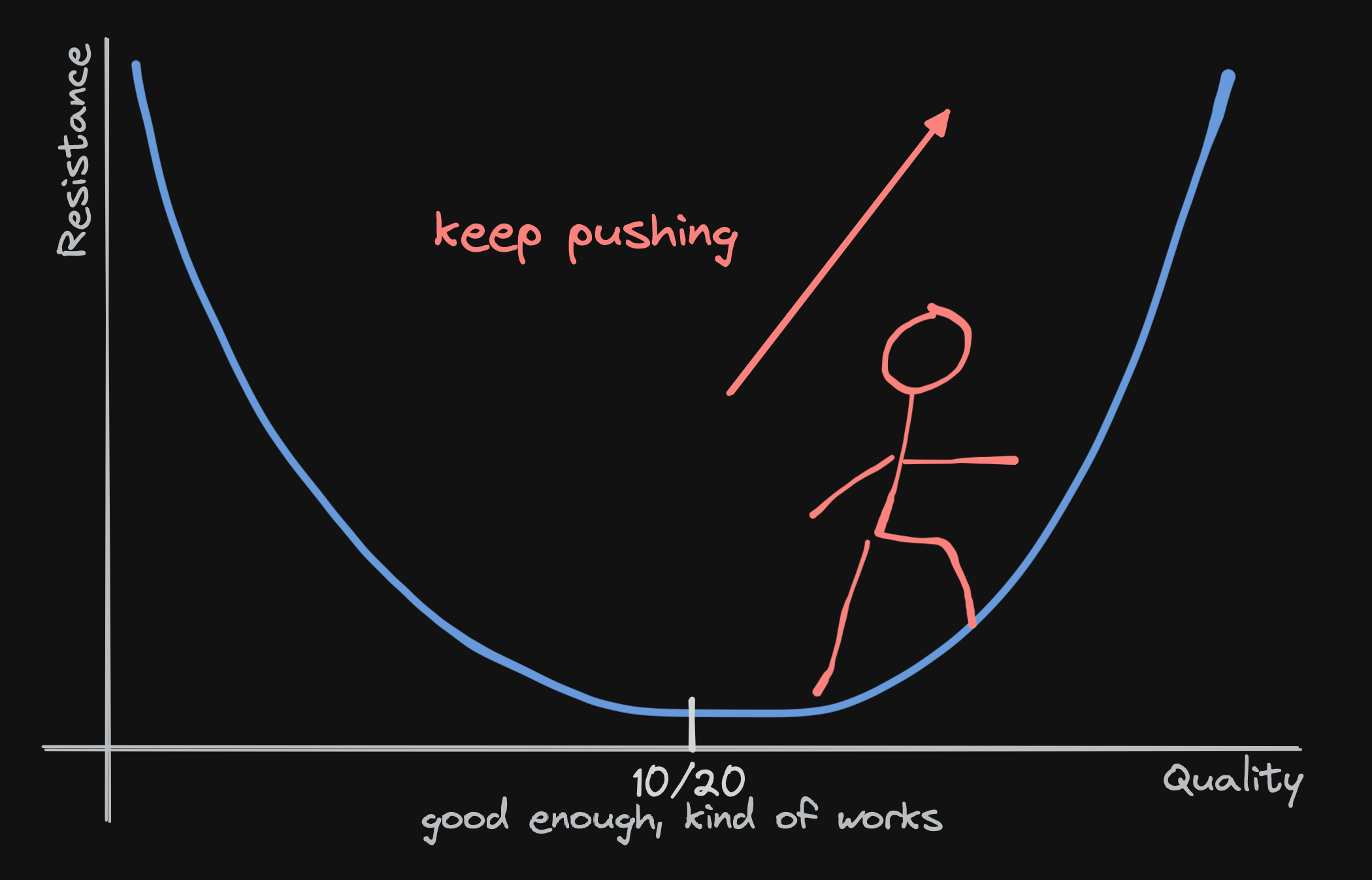 Instead, we could have dug deeper. If we want a building with floors going up into the sky, we understand that first we must dig a hole. But software also has its own way of working that doesn’t conform to physical limitations. Code can kind of work, but, if we don’t let that fool us, we can also kind of let it into production but not really. We can see this in agile, beta software, early access, quality assurance, code rewrites… It’s the iterative process of learning what we want to do from actually doing it.