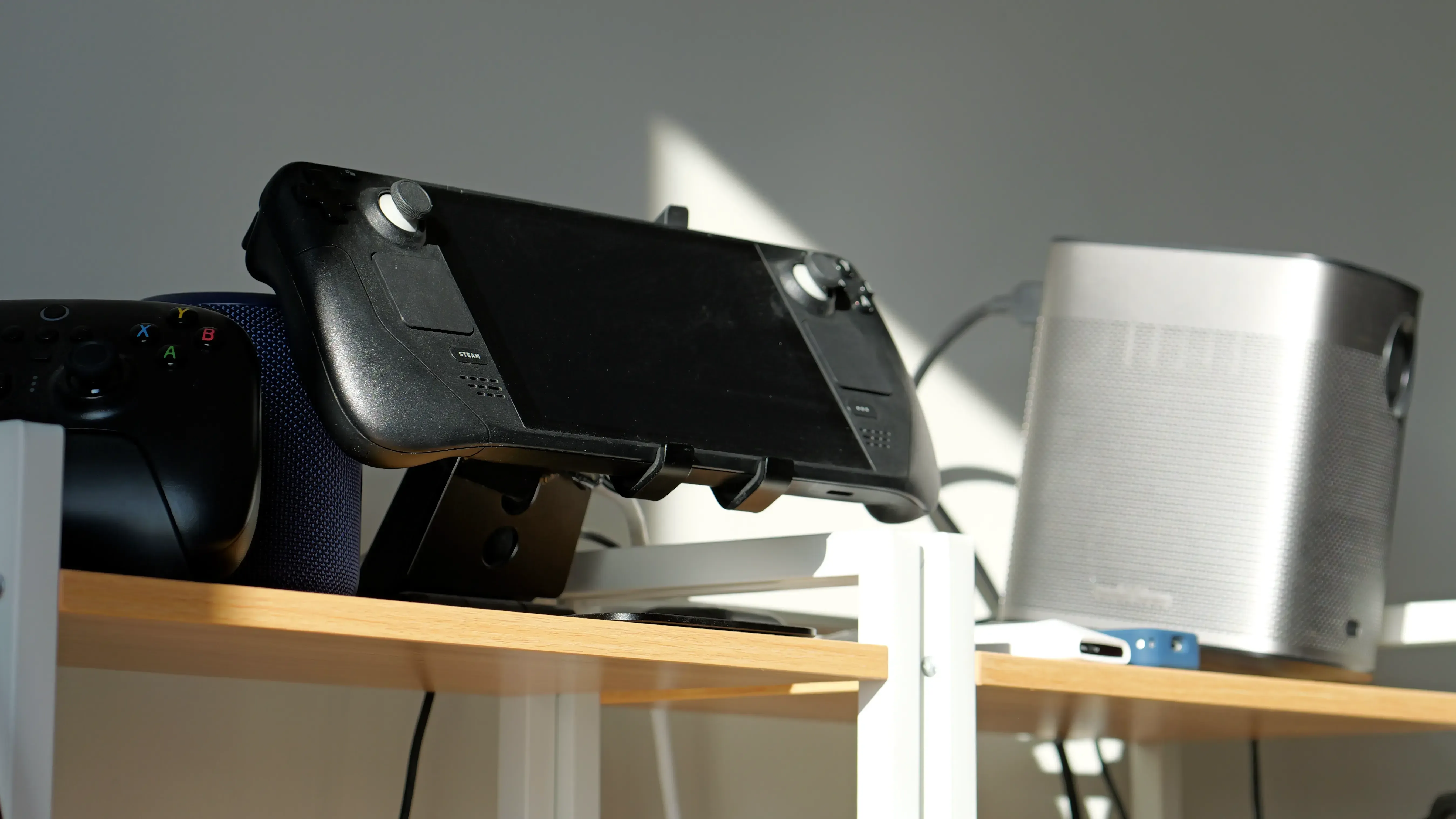 The screen is also ergonomically limited. Depending on the game, you may have trouble reading some parts of the interface. Mine is the original Steam Deck, so the screen is also not bright enough to really play outside. Overall, portability for me isn’t great. More and more, I’ve been pairing the Deck with a projector or a monitor. With the official dock, you can connect power, ethernet, HDMI, Xbox controllers… and it’s just a console now.