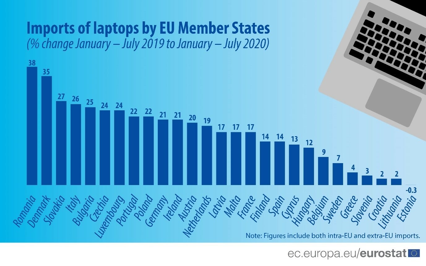 Growth of laptop imports in Europe during 2020