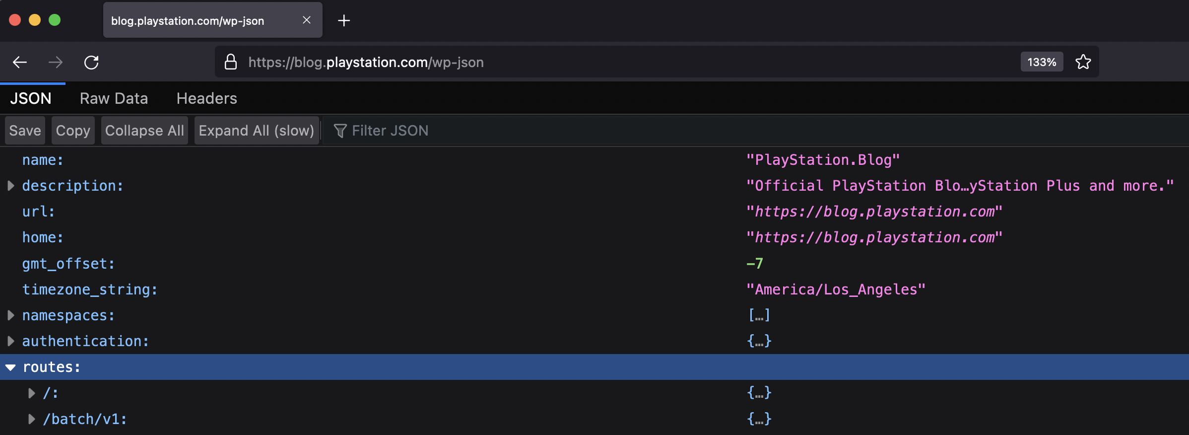 Therefore, I invite you to keep your eyes open for web links. Browser settings still allow you to have them shown to you completely in your address bar. Desktop browsers may still empower you by revealing what a web link might be when you hover your mouse over them. Right-click to copy and edit them as you see fit. Play around with parameters or known paths. For example, many WordPress blogs describe all the links they have if you go to their path on /wp-json. This data is presented in a specific format called JSON, but if you use Firefox (even just as a second browser), it displays that data perfectly.